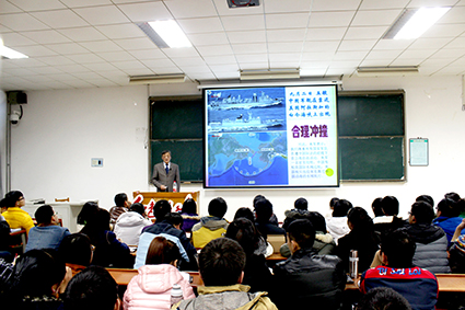 魏黎波老师以近段时间美军舰机多次闯入我国南海海域为引,引出当下热议的南海问题。魏老师从地理角度介绍了南海版图的主要组成部分:东沙、西沙、中沙以及南沙群岛;从历史角度追根溯源,证明我国自古以来就对南海拥有无可争议的主权。面对菲律宾、越南等国非法侵占南海岛礁,魏老师认为其背后离不开美国的政治斡旋。从宏观的战略角度考虑,亚投行、“一带一路”战略,都需要和平的发展环境。因此,中国要坚持“斗而不破,合而不同”的原则,保持战略定力,不能被外部力量所牵制。在现场讨论环节,魏老师简明扼要地回答了现场同学的各种提问。魏老师的讲解鞭辟入里、语言幽默诙谐,赢得了现场热烈的掌声。