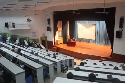 【新闻中心讯】10月23日下午,校党委在东校区第二教学楼演讲厅举行中心组(扩大)学习会,由中共河北省政策研究室副主任张建国主讲“《京津冀协同发展规划纲要》与河北之策”。校党政领导班子成员、校党委委员、全体中层干部参加了学习会。