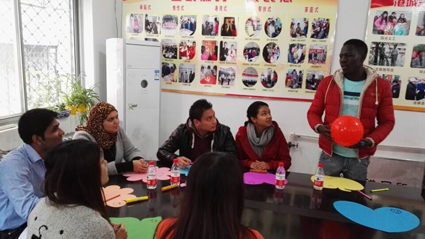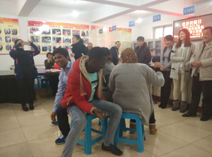 11月17日下午,我校留学生代表深入海港区文化路街道团结里社区活动室,参加了“世界问候日,创建和谐大家庭”的联欢活动。
