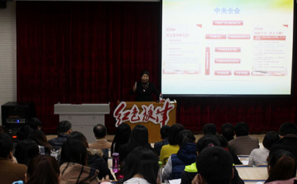 11月5日晚7:30,由马克思主义学院主办,校团委、里仁学院协办,马克思主义研究会承办的第八十七期“红色旋律”讲坛在东校区第四教学楼108教室举行。本期讲坛的题目是《吹响全面建成小康社会的号角——学习十八届五中全会精神》,由马克思主义学院王新华老师主讲。